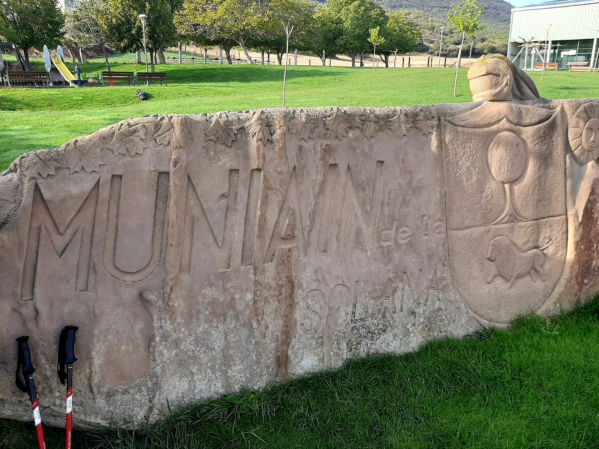 La ruta que tomamos a Ayegui, es la del vía crucis, bastante tortuosa por las piedras “en movimiento” y el barro, hay que bajarla con tranquilidad; no es larga y en poco más de una hora estamos en Ayegui. Seguimos (al revés) el Camino a Santiago, pasamos por el monasterio de Santa María de Iratxe y las bodegas homónimas hasta llegar a la parte nueva de Ayegui. Seguimos la antigua NA-1110 que nos acerca, en 2 km, al aparcamiento de Alcampo lugar de estacionamiento de los autobuses.